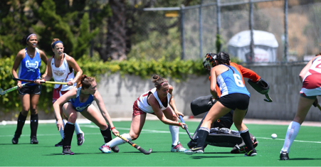 Day 2 of Cal Cup saw all Super Division teams in action with some tightly fought games. The Olympic Club started the day with a 1-0 victory over Northwest in women’s division pool A match on a Sophie Valcke penalty stroke in the second half. Later in the afternoon, Olympic Club was held to a 1-1 tie by the Mates4Mates Warriors women in a physical affair. Kirsten Wilson scored for the Warriors and Kellie Joyce for the Olympic Club.