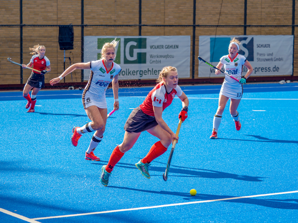 Velbert, Germany - Led by some outstanding goal tending by Kaitlyn Williams, Canada ties the 2016 Olympic bronze medal team Germany 1-1 during a Friday afternoon game.