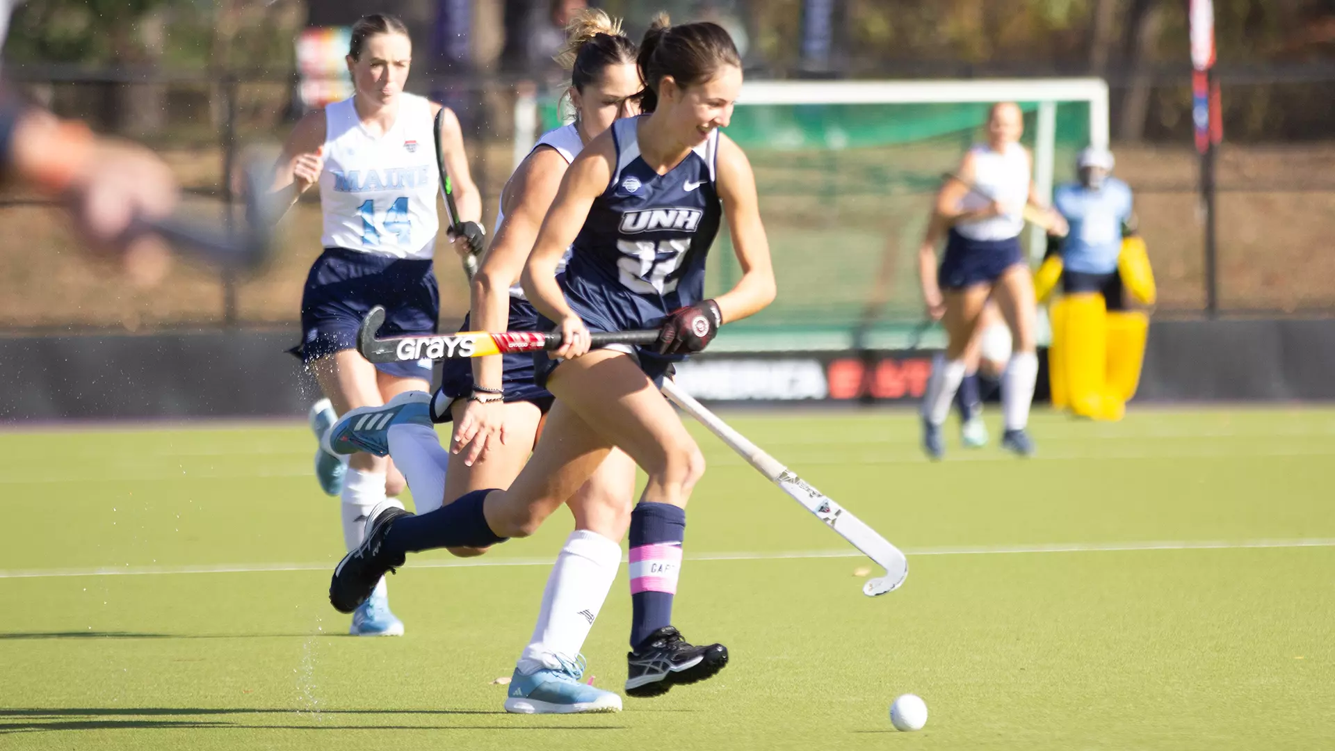 ALBANY, N.Y. – Junior captain Nicole Poulakis (Ajax, Ontario) scored two goals to lead the University of New Hampshire field hockey team to a 5-3 victory against the University of Maine in Friday's America East semifinal at UAlbany's Alumni Turf.
